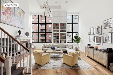 Pristine West Village PH with Private Roof Deck Meticulously renovated and thoughtfully designed, PHD at 377 West 11th Street is a turnkey loft-style home in the heart of the West Village. Soaring 22-foot ceilings, huge double-glazed South-facing windows and a wood burning fireplace with brick surround create a dramatic, yet warm and welcoming living space. This sprawling three bedroom, three and a half bathroom home is highlighted by wide planked walnut floors, custom millwork, and oversized skylights throughout. The chef's kitchen offers top of the line appliances by Wolf & SubZero including a wine refrigerator and warming tray. The dining area can easily accommodate dinner parties for 12+ guests. PHD has no shortage of storage, with smartly built out closets and built-ins throughout. Also on the main floor, you will also find a separate and flexible den/media room with custom-built-ins, murphy bed, and en-suite full bath. On the upper level, the primary suite is a retreat that boasts both a walk-in closet and separate hanging closet, in addition to custom built-ins and a beautiful marble en-suite bathroom. Two additional generously proportioned bedrooms and another marble-clad full bathroom complete the second level. Built for entertaining and year round enjoyment, the private roof terrace is offers multiple seating areas, as well as views of the Hudson River & the Empire State Building. All decking, railings and dividers are made of Brazilian ipe wood, for both a stylish and sustainable finish. A wet bar and barbecue finish off this rare outdoor space. 377 West 11th Street is an impeccably run, 28 unit boutique co-op. This pet-friendly building offers a virtual doorman, full time super & elevator, while conveniently located across the West Side Highway from Hudson River Park.
