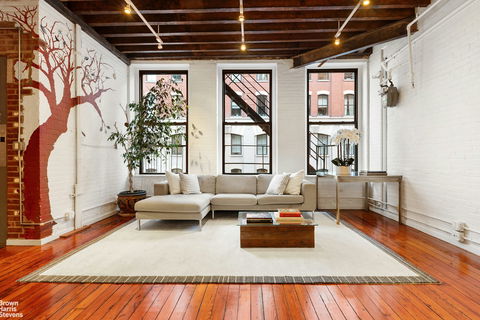 Located in the heart of Tribeca, this serene boutique co-op consists of just 5 full floor lofts. The keyed elevator opens directly into your extraordinary full floor space, featuring approximately 1700 square feet and 10 foot ceilings with room for 2 spacious bedrooms plus a den, nursery or home office. This classic NYC loft has original wood floors and beams, with tin ceilings adding to its charm and grace. A meticulously renovated kitchen has Miele stai...