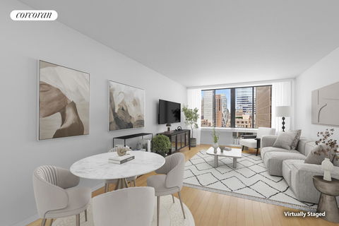 -1 Bedroom, 2 FULL bath One of a Kind Duplex -INCREDIBLE Closet Space -High Floor, West Facing Unobstructed City Views -Fabulous Natural Light -Investor Friendly Building -Modern Updates -Convenient location near Bryant Park, Grand Central, Times Square Welcome to Residence 27/28B at 445 Fifth Avenue - a rare duplex 1-bedroom, 2-bathroom home offering a thoughtfully designed living space in the heart of Midtown.This sun-splashed apartment boasts breathtaking western skyline views and spectacular sunsets through oversized windows with automated shades. Hardwood floors flow throughout, adding warmth and elegance to every room.The entry level features a spacious galley kitchen with stainless steel appliances, a 5-burner gas range, dishwasher, ample cabinetry, and generous counter space. An expansive living and dining area easily accommodates both a large sectional and dining table - perfect for entertaining or relaxing. A full bathroom and deep coat closet complete the first floor. Upstairs, the king-sized primary suite offers a tranquil retreat with space for additional seating or a home office and a second full bathroom. The cherry on top is an expansive walk-in closet rarely found in a one-bedroom home. 445 Fifth Avenue is a full-service condominium with 24-hour doorman, an impressive rooftop fitness center, landscaped sundeck with panoramic city views, and laundry facilities.Situated just moments from Bryant Park, Grand Central, Times Square, and multiple subway lines, the location is as convenient as it is vibrant. Whole Foods is just a few blocks away, and an exciting new food hall is opening directly across the street.This duplex is a rare find - combining space, light, storage, and views in one of Manhattan's most dynamic neighborhoods.