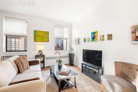 This quiet and serene Prewar Gem is the ideal environment for tranquil living on this magical UES location. With large windows, southern exposure and open sky views this home enjoys abundant light throughout the day and a view of the beautiful twinkle of The Carlyle Hotel illuminated Dome in the evening. The apartment has an entry vestibule, hardwood floors, 9-foot ceilings, ample closet space, galley kitchen and new oversized windows. The sleek kitchen has tiled flooring and showcases stainless appliances and generous lacquered cabinet space. The updated bathroom boasts a custom vanity that features a Caesarstone countertop and nickel hardware. The bedroom is south facing with an oversized large window along with a double hanging wall of closets.