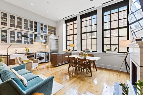 Welcome to your new home in apartment 5D at the historic Inkwell condominium. This top floor unit offers a beautifully balanced 1,211 Sq Foot layout with two bedrooms and two baths boasting 13 feet ceilings, equipped with a washer/dryer and black walnut floors through out. The chef's kitchen is outfitted in all Viking appliances, including a wine refrigerator, farm sink, and island on wheels with soapstone counters.This apartment combines grand size, archi...