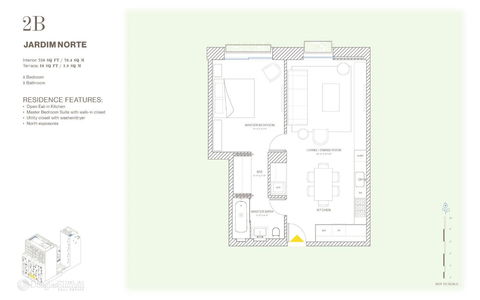 IMMEDIATE OCCUPANCY. VIDEO TOURS ARE NOW AVAILABLE. Residence 2B is a meticulously conceived 758 square foot, 1-bedroom, 1-bathroom residence offers an attention to detail rarely found in any new development. An open eat-in kitchen leads to the living/dining room, where a sliding glass pocket window opens to reveal a planter-box. The gracious primary bedroom also features a sliding pocket window, as well as a walk-in closet and inviting primary bath. A utility closet with washer and dryer complete this beautiful home. Ideal proportions and warm materials imbue this residence with Isay Weinfeld's signature modernist elegance. Each interior detail has been precisely executed: from floating base reveals that highlight 7" -wide plank, Oscar Ono oak floors to custom oak paneling and imported Italian doors with Valli & Valli hardware. Continuous 10-foot ceilings and perfectly scaled rooms create a sense of luxurious calm. Jardim is the first residential condominium commissioned by award-winning Brazilian architect Isay Weinfeld. Developers Centaur Properties and Greyscale Development have worked hand in glove with Weinfeld and a global team of best-in-class craftsmen to execute the vision of this celebrated maestro. Jardim is situated in the heart of West Chelsea's art, culture and technology district just moments from the High Line Park and Hudson Yards. Its elegant towers span an entire block from West 27th to West 28th streets that can be discreetly accessed from either street. A dramatic brick-vaulted private driveway serves as a breathtaking portal to the ultra-private oasis, opening to a fully-attended lobby with three separate elevator banks. Through a latticed wall, tranquil multi-level gardens arise providing an ultimate urban with maple trees, lush plantings, meandering wood and stone pathways, and ornamental lighting. Unheard of for a boutique building of just 36 residences, Jardim offers a 9,000 square-foot private club designed by Weinfeld in a sublime palette of rich terrazzo, slab Statuary marble, and warm oak. The club offers a 60' sky-lit lap pool, fitness center, movement studio, children's playroom, separate gentlemen's and ladies' locker rooms each with steam and sauna, and a massage treatment room. Private parking and individual storage rooms are also available for purchase. Price and availability are subject to change. Equal Housing Opportunity. The complete terms are in an offering plan available from the Sponsor (File No: CD 14-0301)