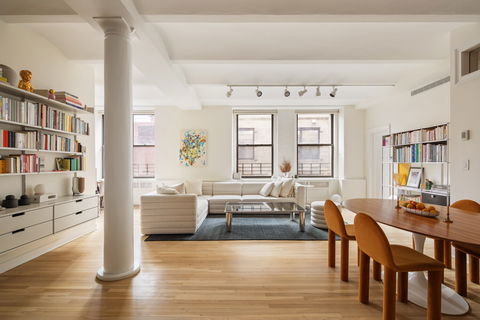 Nestled within a landmarked Tribeca co-op, Residence 6A at 55 Hudson Street is a spacious 2-bedroom, 2-bathroom loft that captures the essence of authentic downtown living. With a seamless blend of preserved architectural detail and thoughtful modern updates, this home offers a refined take on classic loft style in one of Manhattan's most iconic neighborhoods. Original loft details-barrel-vaulted 10-foot ceilings, whitewashed exposed brick, restored whit...