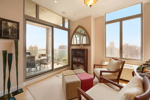 This sun-filled penthouse offers the best in East Side living, with approximately 11-foot ceilings, iconic skyline and river views from a private, key code access floor and a spacious two-bedroom layout. Easily converted into a roomy three-bedroom apartment, this home offers two large, yet protected, terraces that flow nicely from the entertaining and private spaces, creating additional outdoor rooms that are ideal for a quiet, sunrise coffee or dramatic, ...