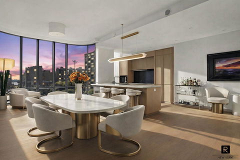 **The Most Coveted 2 Bedroom Layout at 565 Broome**RARE Southwestern Corner Masterpiece**1,681 SF + 160 CF of Private Storage**Welcome to Residence S-8C at 565 Broome SoHo: Enviably situated at the southwest corner of the South Tower and wrapped in floor-to-ceiling glass, this jaw-dropper offers nearly 1,700 square feet of impeccably designed living space, including 2 bedrooms, 2.5 bathrooms, 10-foot ceilings and 6-inch wide plank white oak flooring throughout. With south and west exposures, this home is drenched in natural light and offers enchanting views of the Manhattan skyline, Hudson River, and New York Harbor. A formal entry foyer leads to an expansive 20'6" x 33'6" Great Room enveloped by floor-to-ceiling glass and an open windowed kitchen designed with both practicality and aesthetics in mind.The kitchen features include solid-fluted white oak cabinets with custom shelving systems throughout, a center island breakfast bar, Balsatina lava stone counter tops, and Zucchetti fixtures. Fully integrated, state-of-the-art Miele appliances include a five-burner gas cook-top with a built-in vented hood, a 24-inch microwave/speed oven, a french-door refrigerator with separate freezer drawers, a dishwasher, and a wine cooler.The Primary Bedroom Suite faces south and is equipped with abundant closet space and a MASSIVE en-suite five-fixture spa bathroom with an elongated custom white oak vanity and integrated double sinks, a Muse by Kos deep soaking tub, a separate over-sized shower and a separate water closet. The second bedroom is generously proportioned and is complimented by unobstructed views to the West as well as another EN-SUITE full bathroom. Additional conveniences include a Blomberg washer and dryer, and a multi-zoned linear diffuser heating and air conditioning system. Owner customizations include warm LED lighting surrounding the living room, Somfy-controlled motorized curtains throughout the home, Google Nest-controlled thermostat and sensors, and a large private storage unit (160 cubic feet) with access to an electrical outlet, and customized floor-to-ceiling closets through with automated LED lighting.Designed by world-renowned award-winning Renzo Piano and considered by many to be the most acclaimed condominium in SoHo, 565 Broome SoHo offers the luxury and convenience of a private covered porte cochere with automated parking, expansive views, and 17,000 square feet of amenities: a double height attended lobby with a 24-hour doorman and concierge, 55-foot indoor heated lap pool with steam room, newly-landscaped and furnished outdoor sunning terrace, sauna, and spa treatment rooms, Fitness Center with yoga studio, children's playroom, and an interior landscaped lounge with 92-foot ceilings, a live green wall and library. Located at the crossroads of SoHo, Hudson Square, and TriBeCa, residents enjoy the boutique intimacy of downtown neighborhood lifestyle without renouncing any of the conveniences one would expect from a full-service high-rise on Wall Street or Central Park South.