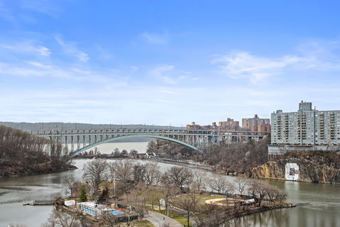 Spacious and bright one bedroom facing south east! Lots of sun to enjoy morning and afternoon. Windowed kitchen with many cabinets and a separate dining area is adjacent. A unique and well designed layout which you can see in the photo of the large dining area just beyond the entrance foyer and kitchen, and adjacent to the living room and the hallway which leads to the windowed bath and primary bedroom. The very large bedroom (11 x 1810" ) also faces south east. The apartment comes with custom shades, which you can use just in case you need a little less sun! 579 West 215th Street is an elevator building, built in about 1965, with a resident super, central laundry, an on site garage (with a wait list), locker room and a beautiful roof deck overlooking Inwood Hill Park, the Henry Hudson Bridge, the Spuyten Duyten Duyvil where it joins the Hudson River, and onwards south overlooking Washington Heights, ad points south. The view can not be more beautiful! The Coop is only a half block away from historic 196 acre Inwood Hill Park, which has many amenities including tennis, basketball, softball, soccer and kayaking. It's also only a block away from the smaller yet idyllic Isham Park, where on Isham Streeet on Saturdays there's a wonderful Farmer's Market. There's plentiful shopping and dining close by and outstanding transportation including the nearby A and 1 trains, the metro north, and convenient highways in any direction you want to go. Asking only $360,000. Live in Inwood, one of Manhattan's epic neighborhoods. You'll be happy you did!