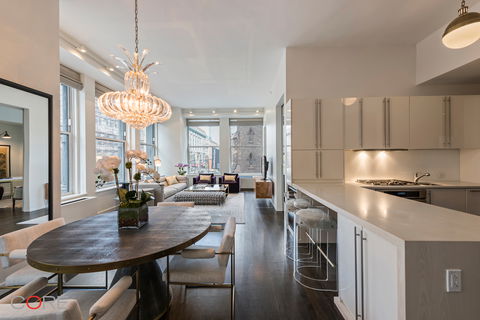 Triple mint and designer finished, this 1,954-square-foot corner loft with 3 bedrooms, 2.5 bathrooms and a private, finished storage room is located in the full-service, landmarked, pre-war Cammeyer in the heart of the Flatiron District. This loft is the most desirable line in this boutique condo - a stunning blend of modern luxury living and historic features. Unique to the second floor, the 12-foot, dramatic ceilings and oversized windows, boast open n...