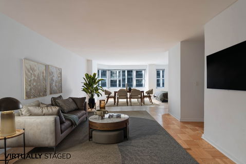 Situated on the southeast corner of 77 West 55th Street, we welcome you to this spacious and sunny alcove studio in a full-service luxury condominium located in the heart and vibrancy of midtown. Upon entry, a wall of south facing windows immediately draws you in, flooding the home with natural light throughout the day. The generous proportions allow for a highly flexible layout with distinct living and dining areas, while the thoughtfully separated sleeping alcove offers privacy, ideal for creating a comfortable living space. The renovated galley kitchen features updated appliances, abundant cabinetry, and ample counter space, perfect for everyday cooking and entertaining alike. The generously sized bathroom has been recently refreshed, and a conveniently located linen closet adds extra storage. Additional apartment features include parquet floors, central heat/AC, and spacious closet, completing this bright and welcoming Midtown residence. Gallery House Condominium, built in 1962 and converted to condo in 1971, has 186 units and is one of midtown's most sought-after, premier luxury full-service buildings. Services include a live-in Resident Manager, 24-hour door staff, in-house laundry room, and a gorgeous, landscaped roof terrace with Central Park and Midtown views. A short distance to Central Park, the lights of Broadway, Radio City Music Hall, fabulous restaurants, shopping, and cultural institutions, as well as all forms of public transportation, it doesn't get much better than this. Please note that the monthly real estate taxes shown are abated for primary users, and there is an assessment of $190.08 through Dec. 2026