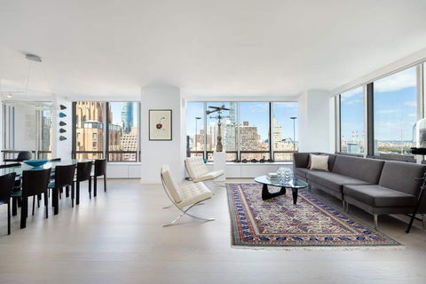 Soaring above the East River, this corner residence is encased in floor-to-ceiling glass, capturing breathtaking, uninterrupted panoramas of the river, skyline, and city beyond. Every inch of the home has been meticulously redesigned with uncompromising craftsmanship, modern sophistication, and luxurious detail.