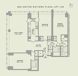 Welcome to 15E at the iconic 860 United Nations Plaza, a sprawling 3 bedroom / 3 bathroom home with striking open city views, exceptional light, and endless potential. This home offers a rare opportunity to own a residence in one of the world's most prestigious addresses. Your gracious gallery opens into an expansive thirty-three-foot-long living room framed by floor-to-ceiling windows offering panoramic views and mesmerizing sunsets. This elegant home features a classic split-bedroom layout, ensuring privacy and comfort in each of the generously scaled bedrooms with en suite marble bathrooms. The third bedroom is currently utilized as a formal dining room, offering both refined entertaining and tranquil living. Separated from the gallery by French doors, it is perfect for hosting dinner parties or entertaining in style. With two closets (one is a walk in closet) it is easily converted back to a third bedroom. The spacious, windowed eat-in kitchen is a rare find in Manhattan and provides the perfect setting for casual dining while taking in beautiful exposures high above the city. A grandfathered-in washer and dryer, a rare and coveted amenity, adds everyday convenience to the home's elevated lifestyle. Throughout, natural light floods the interiors, highlighting the timeless finishes and expansive scale of this modernist gem. Designed by master architects Harrison & Abramovitz, the 860/870 United Nations Plaza twin towers offer a uniquely luxurious lifestyle. Full time doorman, concierge, fully staffed package room, in house valet, live in resident manager, on-site management and more ensure your wants and needs are met twenty-four hours a day.Top of the line amenities include a newly renovated full floor health center with a Pilates studio, a fully equipped lounge/party room, a game room complete with a pool table, ping pong and a golf simulator, a library, two conference rooms, two sundecks, generator, a garage and an attached city playground. The longest private driveway in NYC offers complimentary one-to-two-hour parking. Maintenance includes monthly window washing and utilities. A storage bin transfers with the home. 15E is a rare opportunity to own a sun-drenched sanctuary where Senator Robert Kennedy, Truman Capote, Gloria Vanderbilt, Katherine Graham, Yul Brynner, Johnny Carson, Dina Merrill, Anderson Cooper, Walter Cronkite and many more luminaries were proud to call home. Some photos have been digitally staged.