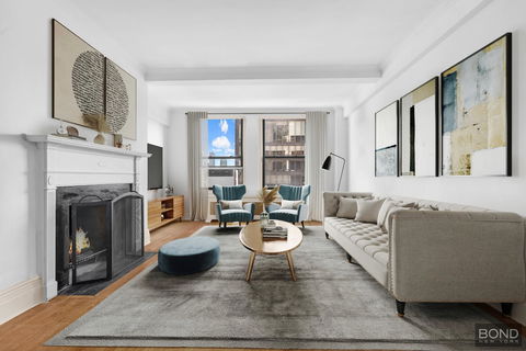 Exceptional one-bedroom, one-bath condominium at 865 UN Plaza.This rare Art Deco pre-war home offers East River views, a wood-burning fireplace, plaster walls, beamed ceilings, and solid oak floorstimeless craftsmanship from an era built to last.A gracious slate-floored lobby with 24-hour doorman and just five residences per floor provides privacy and calm. The flexible foyer works well as a home office or library and features two large walk-in closets. The windowed kitchen is outfitted with Sub-Zero refrigeration, Miele dishwasher, granite countertops, and ample cabinetry.The spacious living/dining area features two extra-wide east-facing windows with sunrise river views. The generously sized bedroom includes a third walk-in closet that can accommodate an in-unit washer/dryer; water lines are visible and in place for custom closet integration, subject to board approval. The en-suite windowed bath features a Zuma soaking tub and marble finishes.Surrounded by green space near the UN Rose Garden, East River Greenway, and Peter Detmold Park. Convenient access to the FDR Drive, Midtown Tunnel, and Grand Central.Full-service, pet-friendly condominium with live-in resident , central laundry, package room, bike storage, and flexible ownership and subletting policies.Please note: Board permits installation of washer/dryer and PTAC wall system.****Please note this home is virtually staged.********BOND New York Properties is a licensed real estate broker that proudly supports equal housing opportunity.
