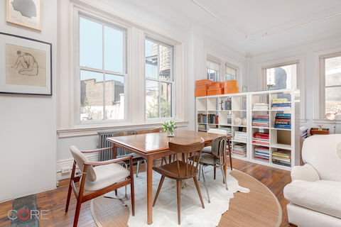 As soon as you walk into this open loft, you will be amazed by the airy feeling provided by triple exposures and 13 windows that surround you. The entrance foyer has original mosaic tiled floors leading to the main room, where you will be immediately met with twelve-foot high ceilings and an open loft measuring approximately 1,000 square feet with all the interior walls removed. This authentic loft is beautiful in its simplicity. The original hardwood floors have 123 years of character. The windows facing east have original metal shutters on the outside that are operable. The loft features an open kitchen with stainless steel appliances, and an oversized bathroom with white marble tiles and white subway tiled walls. Other owners of this apartment line have converted it into a two-bed, two-bath.