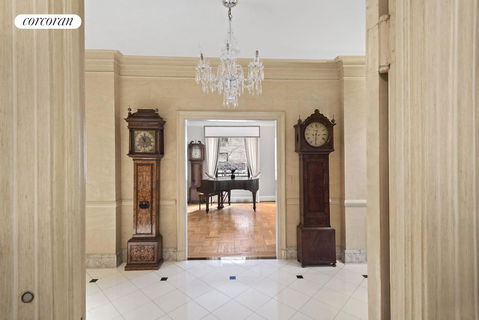 This gracious and elegant 12-room residence occupies the buildings entire faade along Park Avenue (a span of 90-linear feet) with two major entertaining rooms along 82ndStreet. This sprawling home offers grand scale rooms, ten foot ceilings and spectacular light streaming in through oversized windows. A private elevator vestibule leads to a impressive gallery which all entertaining rooms radiate from. The one of a kind corner living room, 34' x 16' features a wood-burning fireplace and three oversized windows providing abundant light. The formal dining room is adjacent to the Living Room creating a remarkable 54 foot span along 82nd Street. There is a wonderful library with custom built-ins and a wet bar overlooking Park Avenue. The South wing of the apartment features five-bedrooms, five bathrooms and a study or staff room. The corner master bedroom suite with a wood burning fireplace, offers his and hers bathrooms as well as generous and luxurious closets. Four additional bedrooms with gracious proportions and ample storage complete the private wing of this home. The windowed kitchen is conveniently accessed from the gallery or through the butler's pantry off the dining room. This enormous chefs kitchen is well equipped with abundant storage, an oversized stove with double ovens, two sinks, two refrigerators and laundry. Through the wall air-conditioning and oversized skyline picture windows. 950 Park Avenue was built in the Italian-Renaissance-palazzo style by renowned architect J. E. R. Carpenter in 1921. This elegant White-Glove, Pre-War Cooperative features a fabulous Roof-Top Garden with City and Central Park views and a fully fitted roof-top gym.