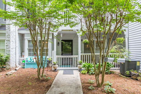Adorable move-in ready condo with open floorplan. Enjoy quiet evenings listening to the soothing sounds of the nearby creek on your private covered patio with outdoor ceiling fan. Easy living - everything on one floor, hardwood floors throughout, large living room with fireplace, lots of storage (walk-in closet), kitchen is open to the living room. Community has a pool and you are next door to Laurel Park. Excellent Marietta location, walk to shopping ...