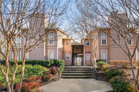 Convenience, Easy Living & Location, ALL in ONE ! Completely updated throughout! All is NEWER - less than 4 years - Interior Paint, Granite Counter Tops in Kitchen and Bath, White Cabinets, SS Appliances, Tile and hardwood flooring & HVAC! Back Unit with plenty of Natural Sunlight & Privacy! As you Enter there is a Private Tiled Entry Foyer featuring coat closet and separate Laundry area! Nice Size Family Room with Ceiling Fan, Brick Fireplace/Mantle and Gas Logs for those cozy evenings! Cubby Area great for a bar or computer station! Vaulted Sun Filled - Sun Room for add'l Space, could be used for office, studio or keeping room, many options! Generous size bedroom with walk in Closet featuring Custom Shelving leads to updated Full Tiled Bath and linen closet also with custom shelving! All this with the convenience of Shopping, walk to Restaurants, Truist Park & so much more! Relax this Spring/Summer at the Community Pool that has been recently renovated! Enjoy this small community with private views and picnic tables in back of complex!