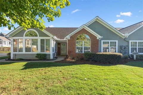 Spacious, one-level living in East Cobb where HOA takes care of most all your needs! Step into the inviting family room with vaulted ceilings, gas log fireplace, hardwood flooring, and abundant natural light. French doors off of the family room lead to the window-lined sunroom for seamless entertaining flow. The dining room is also adjacent to the family room, open to the kitchen which has been upgraded with modern appliances. Just off of the kitchen is the laundry room and attached two-car garage with custom-built shelving for ample storage storage space. The primary suite is large and tranquil with a generous en-suite bathroom and walk-in closet. The two guest rooms are sizeable and bright, upgraded with recent carpet, and offer access to a hall guest bath. This home is truly the perfect combination of comfortability and easy maintenance! The Crossings at East Cobb features a clubhouse with entertainment room, kitchen area, pool, and fitness space. Included in the HOA is water, sanitation, roof & exterior building maintenance, landscaping, pest & termite control, and lawn care. Come see this beautiful, well-maintained community for yourself - the summer landscaping is showing off!!