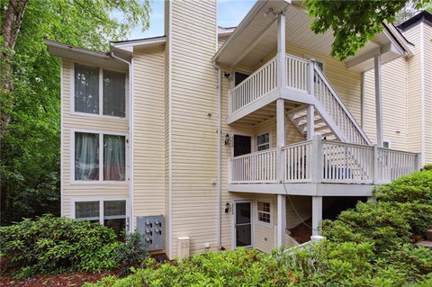 Nestled in a Premium Cumberland Location! This Light-filled Condo offers a truly exceptional Living Experience. Situated in Bentley Ridge, you'll love the Mature Trees and Tranquil setting this End-Unit, Bottom Level home offers. Upon arrival, you'll be greeted by a Well-Maintained Exterior showcasing Beautiful Landscaping and a Welcoming Front Porch. Step inside to discover a Thoughtfully Designed Floorplan. The Fireside Livingroom flows to a Serene Sunroom that's perfect as an At Home Office or Reading Nook overlooking the lush landscaping. The Kitchen is a resident chef's dream with Gas Range, Stainless Steel Appliances, and Ample Counter/Cabinet Space. Whether you're hosting a lavish dinner party or enjoying a quiet meal with loved ones, the Adjacent Dining Area offers an elegant setting for every occasion. Escape to your Primary Suite features a Walk-in Closet and Ensuite Bathroom with Dual Vanity. A spacious Secondary Bedroom, Bathroom, and Private Fenced Patio complete this wonderful unit. You'll love access to the Community Pool, as well! Enjoy the amazing location, under 10 minutes to Shopping, Dining, and Entertainment at places like Truist Park, Costco, Dave & Busters, Target, and more! Easy Access to I-75 and I-285 for all commuting needs.