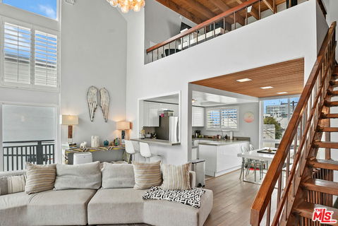 Hold released 5/3. At the beach is this contemporary, 2 bedroom, 3 bath, approximately 1,400 sq. ft. townhome, with direct access from your own two car private garage. 20 ft. high wood beam ceiling with an abundance of windows to enjoy the beach, surf and Venice pier views. Remodeled kitchen and baths, along with spacious bedrooms enhance the townhome. There is a loft/family room and rooftop deck with panoramic views of the coastline and city...