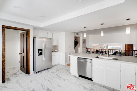 Happy New Year! Make an offer today on this handsome, pristine and spacious townhome that stands proud in the prestigious Villa Marina of Silicon Beach. Nestled in a quiet location, this approximate 2022 square foot split-level home is an end unit boasting additional side windows allowing natural light to stream in. Recent renovations include quartz countertops, tiled flooring in the kitchen, new stovetop + microwave along with newer double oven, garbage disposal, sink and gooseneck faucet. Painted throughout, you will also appreciate the multi-hued honey HW flooring, the richness of a customized LR fireplace mantel, recessed lighting perfectly placed, beautiful leaded glass artfully showcased in upstairs window/door, stately wainscoting in a master-bedroom suite, as well as, gorgeous closet facades, closet organizer plus an exquisite autumn hued tiled bathroom floor and so much more. This is truly a must-see pride of ownership opportunity. To further enhance daily life is a jacuzzi steps away and the pool nearby. Secured convenience is offered by the direct entry--well cared for--garage that is designed to house 3 cars and secure your prized possessions in an ample storage room. The neighborhood is luxury itself with all shopping, entertainment and scenic pleasures in very close proximity inclusive of easy access to bike paths, marina, transportation and beaches, along with a security patrolled neighborhood. This is a residential dream come true.