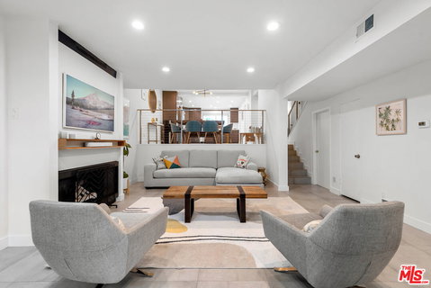 This updated end-unit townhome is nestled in a tranquil cul-de-sac, in prime Marina del Rey. This unit showcases vaulted ceilings and a spacious, open floor plan. Upon entering, you'll find a generous living area with a cozy fireplace, leading to an expansive patio perfect for entertaining and al fresco dining. Adjacent to this space is a dining area and an open kitchen featuring a center island, quartz countertops, custom cabinetry, and stainless-steel appliances. Additionally, there's a private office just off the kitchen, ideal for those work-from-home days. Upstairs, you'll discover an expansive primary suite with high ceilings, recessed lighting, and custom window treatments. The en-suite bathroom has been thoughtfully updated with a dual vanity and new tiles, along with functional closet built-ins. The oversized second bedroom boasts vaulted ceilings and a private patio that overlooks the charming courtyard. Both the additional bathroom and powder room have undergone complete renovations. This home comes with a host of additional features, including direct access to a spacious 2-car garage, in-unit laundry, all-new windows and sliding doors, a new HVAC system, and updated flooring and tile. Living here offers the feeling of residing in a single-family home while enjoying all the advantages of community living.