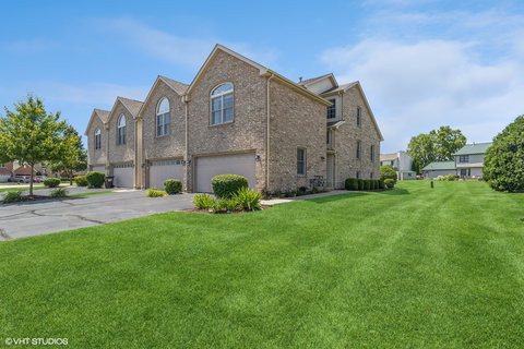Adorable and MOVE IN READY 2 Bdrm. + LOFT w/closet (FLEX space could easily be opt'l 3rd bdrm) 3.5 Baths and FULL finished English Basement. This super spacious END UNIT home lives like a single family and is filled with natural light. The vaulted family room features a NEW electric fireplace with shiplap surround and bare wood mantle, on-trend paint hues, and beautiful wood floors. The kitchen has all NEW SS appliances and new crushed granite sink. Upstairs the master is very generous 14 x 19 w/ vaulted ceilings and a walk in closet . The third level hosts a 2nd bedroom w/ large walk in closet, FULL bath and separate area perfect for a desk/other. The loft has a closet and is currently being used as a 3rd bdrm. Would be great flex space for office, fitness/other. A full English basement provides approx. 500 add'l sq. Ft. of living space w/ bright windows, laminate floors and a FULL Bath, perfect for possible Multi-generational living needs. This is in a golf cart approved community, and walking distance to Fox Ridge and Shamrock parks. 2- CAR GARAGE. Maintenance free brick condo that is Backs to lush green space perfect for enjoying the outdoors. Just 10 minutes to Boone Creek Golf and McHenry Country Club. The area has great downtown McHenry shops, restaurants, live music, farmers market, McHenry Outdoor Theatre and more. NEW HVAC/2023, NEW Humidifier/2023 NEW Water Heater/2021, NEW SS appliances/2021. Just move in and enjoy. QUICK CLOSE POSSIBLE.