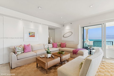 This Spectacular South East Corner Stack in Villa Del Mare Is Rarely Available! Decorator Designed & Furnished Residence - Professionally Curated, Updated & Ready to Occupy. ( Personal Items & Artwork Excluded ) Includes Custom Vanities, Glass Mosaic, Custom Designed Hardware, Rift-Cut White Oak, Jerusalem Stone, Top-Of-The-Line Appliances, Motorized Shear Weave Shades & Blackouts, Sonos System. Breathtaking Wrap-Around Open Ocean Panorama offers Incomparable View Down the Entire Fisher Island Beach. Filled with Streaming Sunlight! 3 Bedrooms, 3.5 Baths. Primary Suite with Gorgeous Ocean Exposures has Luxurious Spa-Like Bath with Oversized Shower & Double Sinks. This Unique Open Ocean Corner & Impeccable Design make this Property Priceless! Call for Appointment to See Today!
