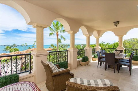 Introducing the former penthouse of Oprah Winfrey, located in Fisher Island's heart. One of four flow-through lower penthouses in Seaside, it offers unobstructed views from its four expansive balconies & terraces. Featuring 4 beds/3 baths + office, this home is flooded with natural light and enhanced with hurricane glass. Move-in ready, it awaits your personal touch. Just steps from the Beach Club, Tennis Center, and more, this property epitomizes luxury island living. Additional renderings showcase its potential with breathtaking vistas and a rooftop deck. Your private tropical sanctuary awaits! Now Accepting Offers.