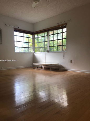 The unit offers a 1-bedroom layout, ranging in size from 527 to 675 square feet. It provides clear views of a garden and the vibrant surroundings of South Beach. Each unit has its own character, highlighted by original hardwood floors and an in-unit washer and dryer. The building has gated access, adding an extra layer of security.