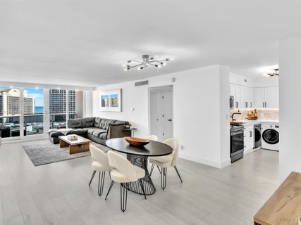 Coming soon! Welcome to your new home. The most beautifully renovated unit, a special 2 bedroom 2 bath home in the sky. Full amenities building where you can enjoy fantastic sunrises and incredible ocean views from your balcony. . Kitchen has been completely remodeled with updated cabinetry, quartz countertops and carrera marble backsplash. Luxury vinyl plank floors throughout the home, custom closets, recessed lighting throughout and sleek & bright living room with beautiful ocean views. Ready to move in and enjoy the beach lifestyle. Building features: sauna, gym, 24Hr security, pool, marina, valet parking. Walk to the Beach, Publix, restaurants. Insurance, cable-TV, exterminator, hot water, sewer and AC included in the HOA. For showings Please call agent 24hours notice .