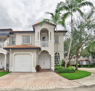 Immaculate two story, corner townhouse located in the rarely available MYSTIC FOREST II community. Many upgrades in a classic Mediterranean style 4 bedrooms, 2 and ½ bathrooms and a one car garage townhouse. You will love the travertine first floor tile, dark wood kitchen with granite counter tops. Hardwood on second floor, spacious master bedroom with walking closet, TOTO toilets and custom wood cabinets in each bathroom, crown moldings all around the house, surround sound speakers in the family room and yard. Corner yard space with a custom-made stone gas grill w/fridge & travertine brick pavers perfect for entertaining. Community pool and clubhouse for events. Community was recently painted, low HOA. Very close to Turnpike, walking distance to Town & Country mall. OPEN HOUSE ON 09/22!