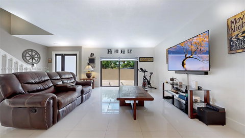 Home is located in the sought-after Calusa Point 3 bedrooms and 2.5 bathrooms. Cozy home lots of upgrades . 1st floor luxurious 24x24 porcelain tiles, 2nd floor new wood laminate . Kitchen updated with new appliances, new washer/dryer, new AC 2020, new roof replaced 2021. New blinds through out the house. All bathrooms upgraded. Big patio new screen, awning perfect for entertaining friends or family. New tiles have been installed outside in the back and front patios. All windows/doors are hurricane impact, front door replaced 2024, sliding glass doors also have hurricane shutters for added security. Excellent HOA low cost of $285 per month. Amenities include private pool, racquetball, tennis, basketball, and playgrounds. Home is minutes away from the turnpike and the 874 expressways.