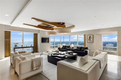 Breathtaking unobstructed views of the ocean, bay and Miami Skyline from this one-of-a-kind PH at the Four Seasons in Downtown Brickell. Spectacular home comprised of four seamlessly combined units. Grand private foyer entrance into an open living space that offers breathtaking stunning sunrises and sunsets through its floor-to-ceiling windows. Private movie theatre, a state-of-the-art chef’s kitchen, beautiful wine cellar and custom home offices. Sold fully furnished and move-in ready. Located at the Four Seasons Residences, one of the tallest and most prestigious buildings in Brickell. Enjoy world-class amenities, multiple pools, a fitness center, a spa, and concierge services. The home includes four reserved parking spaces with valet services available for guests.