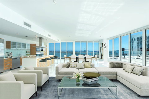 Rarely available, modern Penthouse in Paramount Bay Edgewater, with a private, 2,000-sf terrace offering incredible views of Biscayne Bay, Downtown Miami skyline, and western sunset views. This immense, 5-bedroom 5.5-bath luxe residence features floor-to-ceiling glass walls that allow maximum exposure of panoramic water and city views throughout all living spaces, open concept gourmet kitchen, oversized bedrooms with en-suite baths and walk-in closets, private elevator, and more. Live life on the water in Miami’s trendy neighborhood, Edgewater – ideally located between Miami Design District, Midtown Miami, Downtown Miami, and Miami Beach. Paramount Bay is a luxe condominium with 2 pools, 2-story 6,000-sf fitness center with spa, valet, and 24-h security. Available for lease at $19,995/mo.