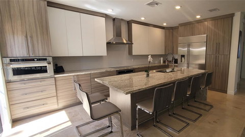 Great location! New construction in gated community, lakefront 4bd/3.5 baths corner unit. Open concept SMART townhome. Upgraded custom kitchen w/state of the art Monogram appl., luxury granite countertop, Travertine stone floors & travertine pavers in patio. Powder room w/lighted quartz top. Luxury vinyl wood floors on second floor. Remodeled garage & customized as an office w/custom cabinetry, vinyl wood flooring and mini split unit. Camera security system. Ring camera doorbell. Spacious master bedroom with mini split, and custom closet. Room 2 has a wide window with lake views . Stair balcony has modern custom-made glass railing. Smart light switches in all main rooms. Enlarged laundry room in 2nd floor, with latest LG washer/dryer. Community has a brand-new clubhouse.