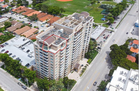 Exceptional penthouse at Davinci on Douglas! This rarely available 2 bed/2bath NE corner unit boasts stunning views of Coral Gables. Unique open living area layout with large outdoor terrace, porcelain flooring, volume ceilings, and floor-to-ceiling impact glass throughout. Updated kitchen with stainless steel appliances, granite countertops, and bartop seating. The primary bedroom features floor-to-ceiling windows with a private balcony, and the ensuite bathroom is equipped with a refreshing spa-style shower and luxury finishes. The unit interior, building lobby, and hallways are freshly painted. Secure boutique building with a 24-hour guard, garden pool, and gym. Near Douglas Park and downtown Coral Gables. Includes 2 covered parking spaces and a huge storage unit