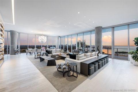 A true one-of-a-kind Penthouse in the dancing towers of Grove at Grand Bay. Enjoy sweeping views of Biscayne Bay and the city of Miami from every picture window. Awe-inspiring bespoke finishes in this unique Penthouse include an integrated glass TV in the wall, a custom elevator lift with access to your private pool and outdoor patio, walk-in temperature-controlled wine cellar that houses your finest wine and spirits collection, plenty of built-in closet and storage space, custom imported wood floors, sleek Italian kitchen cabinets and living spaces suited for the most discerning individuals. This private residence lends itself to year-round entertaining or cozy nights at home with loved ones.