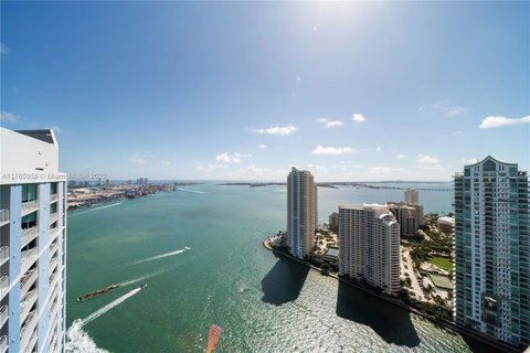 Breathtaking 3/2 Upper Penthouse with surrounding water views! Custom kitchen designed by premier Italian manufacturer of luxury modern and traditional Italian kitchens. 12 ft ceilings, LED & recessed lighting throughout, state of the art Thermador appliances, motorized window treatments w timer, floating cabinetry, waterfall showers, 2 Master Walk-in closets, 8 ft custom Transitional walnut wood doors throughout, new AC. Wrap around balcony bringing the square footage of the home to 1,534! Valet, pool deck, 24/7 security, world class fitness center and more! The list is endless. Rare Spectacular find in heart of Miami. Just minutes to Brickell, South Beach, Key Biscayne, Bayside, Design District and so much more! (CHECK OUT THE ATTACHED VIDEO) Call today for private showing.
