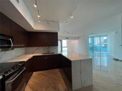 12th-floor remodeled apartment with stunning panoramic views of Miami River, Brickell, downtown, and Biscayne Bay located in a riverfront building. Versatile den can become third bedroom. Large balcony. All closets are custom. Primary bedroom has a walk-in closet. All bathrooms have walk-in showers. Modern kitchen features a waterfall-edge counter and updated appliances. Luxurious Wind Condominium offers amenities: pool, gym, racquetball court, sauna, party room, and more. Gated community with 24/7 security and valet. Centrally located, walk to Brickell and Bayside. 1 assigned parking included. Don't miss this remarkable living experience in Brickell and downtown Miami.