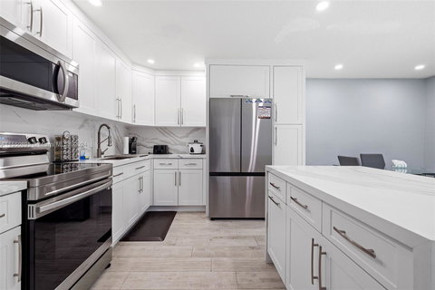 Step into luxury with this fully renovated 3-bedroom, 2.5-bath corner townhome spanning 1523 square feet in the heart of Sunset Harbour. The kitchen is a chef's dream, boasting Calacatta Quartz countertops and an island with a full waterfall effect, perfect for entertaining family and friends. Enjoy abundant natural light, spacious living areas, and tranquil bedrooms. Safety and durability are ensured as the home has impact windows and doors, as well as a roof from 2019. Plus, with a welcoming front foyer and an expansive backyard, this home offers the perfect blend of style and comfort. Don't miss the chance to make this rare lot & block townhome yours!