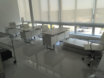 The Bank has been totally transformed into a residential/commercial office condo. Impact resistant glass windows. Exposed, 20'+ ceilings, white porcelain tile floors. The views in every direction are fabulous, from the floor to ceiling windows and large wrap-around balcony. Contemporary European kitchen cabinetry, stainless steel appliances. Roof top amenities include Spa, Sundeck. Fitness center featuring cardio and weight equipment. The unit can be easily converted to a two bedroom unit.