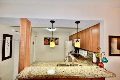 Remodeled 2-bedroom, 2-bath + den corner unit! This beautiful home features a modern kitchen with granite countertops, ceramic tile floors throughout, and a spacious primary bedroom. Enjoy the convenience of a washer and dryer inside the unit and relax on the huge covered patio. Hurricane accordion shutters. Community amenities offer a pool, clubhouse, and tennis courts. Conveniently located near great shopping and entertainment.
