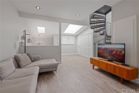 This beautifully renovated home has all the modern finishes and upgrades discriminating buyers want! From the moment you enter you'll appreciate the modern appeal of the openly designed staircase, new contemporary light fixtures, and wood-look flooring that is durable, popular Luxury Vinyl Plank. The kitchen features fresh white shaker style cabinets, pull-out drawers behind cabinet doors, quartz counter tops, stainless steel appliances, recessed lighting, bar seating and separate eating area. There's also an over the sink garden window perfect for your herb garden! The bright living room flows seamlessly from the kitchen and features recessed lighting and light catching skylights throughout. The flexible "loft" area would be perfect for a home office or classroom! There's a convenient powder room, too! Two bedrooms, both with private ensuite, full baths! Designed for privacy, each one is on a separate floor. Upstairs is the generously sized owners suite. It has high vaulted ceilings and walk-in closet. The bath has dual sinks and is fully remodeled! Two car attached garage and convenient indoor laundry makes for easy living. In addition this home has plantation shutters throughout and a brand new water heater. This beautiful townhouse is located near the center of Little Saigon, close to Bella Terra shopping center, close to school, parks, & freeway, Welcome Home!