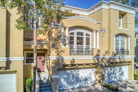 Parc Metropolitan 4 Bedroom Beauty*Natural Light Filled Home with High Ceilings*Spacious Living Room with Gas Burning Fireplace Opens Up to Kitchen with Freshly Painted Cabinets. Large Center Island, Like New Counter Tops & Recessed Lighting*Separate Cozy Family Room*Two Large Bedrooms on Ground Floor with Full Bathroom*Two Primary Bedrooms On Top Floor*Updated Baths with Double & Single Sink Vanities*New Plush Carpet & Pad*Custom Interior Paint*Inside Laundry with Washer/Dryer Included*Two Car Garage with Side by Side Parking*Low HOA Dues Feature Plenty of Amenities*Just Steps Away From Great Mall, Restaurants, & Parks*Easy Access to Freeways*Must See!