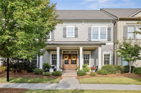 Beautiful townhome ideally located in downtown Crabapple. Immaculately maintained and move in ready. Designer level touches in every room. Fantastic hardwood floors throughout main and upstairs. Open floor plan with 9' ceiling up and down. Kitchen with island, beautiful granite counters, stainless Thermador appliances, oversized breakfast bar, eat-in area overlooking great room with fireplace. Separate dining room and office or optional 4th bedroom on main. Full bath and closet right next to it and can be made adjoining. Owner's retreat plus two additional bedrooms upstairs. Owner's suite has large frameless shower, soaking tub, dual granite vanity sinks and oversized closet. Secondary bedrooms have walk in closets and J&J bath. Huge upstairs storage room and laundry. Updated lighting, wide plantation shutters, recent interior paint and new exterior paint, custom barn door in owner's suite and shiplap on main floor. Large rocking chair front porch, double door entry, fenced landscaped yard and patio and two car rear entry garage. Excellent schools, fantastic location close to all the exciting developments in downtown Crabapple. Short drive to downtown Roswell and downtown Alpharetta entertainment areas. Crabapple Market district is a short walk and/or bike ride away - you will find a brewery, many restaurants, a butcher shop, a gourmet grocery, nail salons/hair salons, interior design stores, art galleries and more. This home is minutes from The Green, right in the middle of Crabapple Market, which hosts 2-3 events a week from concerts on the green, to shopping extravaganzas, to festivals and exotic car shows! This is the hottest location in north Atlanta to call home!