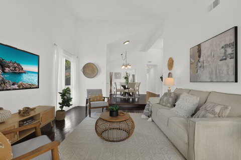 Discover tranquility in this single-story 3 bedroom haven featuring a double-sink, privacy bathroom and an oversized master bedroom. This offers ample space - vaulted ceilings for relaxation; a personal sanctuary within the comforts of your home. Indulge in privacy with the master bedroom strategically positioned on the opposite side from the two other bedrooms, providing a harmonious balance between personal retreat and shared living spaces. Discover culinary delight in the modern kitchen equipped with new appliances and double-pane windows throughout. The everyday eating area is bathed in the warmth the morning light brings and that of recessed lighting; creating a welcoming ambiance for your daily meals. Unwind in the expansive living room adorned with a fireplace, complemented by vaulted ceilings that create a spacious atmosphere. The formal dining room adds an elegant touch, providing a perfect setting for shared meals and memorable gatherings. Find solace in the private patio and atrium- perfect for yoga or meditation. Conveniece meets functionality with the attached 2 car garage, providing easy access and secure parking right at the heart of your home. This community boasts of a two-story clubhouse, a 25-meter swimming pool, a child wading pool, and 2 lighted tennis courts.Conveniently located near shopping and schools, this home is a retreat of modern comfort and serenity. Enjoy a short stroll to the picturesque Bart Spendlove Park Walkway, inviting volleyball courts creating an active and scenic lifestyle right at your doorstep. Experience the coveted appeal of a sought-after single story floor plan, offering both comfort and practicality. With minimal maintenance requirements, this residence ensures a lifestyle of ease and simplicity.