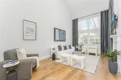 The ultimate blend where MODERN & LUXURY collide in this breathtaking two-story townhome tucked away in one of the most PRIVATE and PEACEFUL locations in the gated Mirasol community. Whether you like to entertain or simply kick back and relax after a long day at the office, rest assured, you will feel the desire to do both here. With no expense spared from top to bottom, this extensively renovated masterpiece surpasses all expectations boasting luxury amenities and high end finishes. 2-car DIRECT ACCESS GARAGE (with laundry area & overhead storage) and no one above or below, this home lives and feels like a single family home offering maximum privacy & security. Soaring two-story high ceilings in the oversized, light & bright family room w/dual sided fireplace making it perfect for entertainment. The space is vibrant & renewed with finishes that blend comfort, practicality, and visual allure. Notable upgrades include: dimmable recessed lighting thru-out (except the 2 secondary bedrms), stairway "night time" lighting, illuminated "night light" electrical outlets, Engineered Hardwood floors thru-out the downstairs & up the stairs to the bedrooms, and newly installed upgraded carpets in all bedrms. The kitchen has been completely transformed to expand the size of the kitchen, featuring a widened entrance and a redesigned oversized quartz peninsula that comfortably seats 4 and houses a 12-bottle mini wine 'fridge. Other luxury kitchen amenities include: Newer white cabinetry w/high-end pulls, "Lazy Susan" turn-style cabinet, pull out spice rack cabinet, undermount lighting & illuminated display cabinet, soft closing doors & drawers, quartz countertops & backsplash, touchless faucet, upgraded recessed lighting & decorative light fixtures, LG stainless appliances, and custom pantry cabinets. Off the dining room there is access to a low maintenance backyard with landscaped perimeter, water feature and is fully enclosed by a privacy fence that backs to a tranquil hillside. Fresh interior paint & new light fixtures thru-out set an inviting and welcoming tone. Spa-like Master Bath w/brand-new: soaking tub, walk-in shower w/floor to ceiling tile, upgraded seamless shower enclosure, dual vanity with quartz counters, new light fixture & mirrors, & walk-in closet w/custom closet organizers & drawers. Community pool/2 spas (1 spa is steps to this property). The location is SUPER CONVENIENT to freeways/hospitals/shopping/Starbucks.Turnkey sale for a great price!
