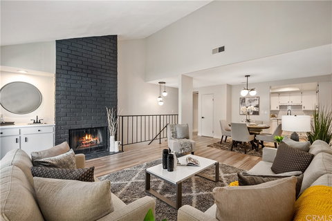 Large EN-SUITE on the FIRST FLOOR. Newly Remodeled two story Monrovia townhouse located in close proximity to Myrtle Ave, Old Town Monrovia. As you enter the double door entryway, you are greeted with brand-new wood laminate flooring throughout the unit. The first floor has a large 2nd en-suite with a newly updated full bathroom and a private outdoor patio. As you continue to the end of the first floor there's storage space, washer/dryer closet and a door that leads you to your spacious two car garage which completes the first floor. From the front door, you will head up the stairs to the open living and dining space with a fireplace to warm you during the cool seasons. The second floor has a balcony you can relish the peek a boo mountain views and enjoy your morning coffee or dine outside when the weather is pleasant. The living area has vaulted high ceilings. The kitchen has new Carrara White stone for countertops and backsplash, new sink, recessed lighting, and new hardware for the cabinets. As you walk to the back of the 2nd floor, you have your 1st EN-SUITE with remodeled full bathroom with double sink and a standing shower. Don't wait, book your appointment today.