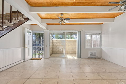 Conveniently located near shopping malls, restaurants and banks. Easy access to freeway and public transportation and Metrolink station. This property features 2 good size bedrooms upstairs with large closets, 1 full bathroom upstairs with skylight and 1/2 bath downstairs. Large living room with a sliding door leads to a covered patio. The kitchen features granite countertops and a breakfast bar. It has tile floors on the first floor and Laminate floors in bedrooms. Laundry closet with washer and dryer hookups is located upstairs. Electric baseboard heaters and wall AC units are available in the living room and the two bedrooms. This unit has 1 assigned carport with storage. Low HOA due of $145/month includes water and trash. Great starter home or rental investment. It is NOT FHA or VA approved.