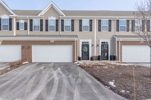 Built in 2022 and move-in ready, this stylish 3-bedroom, 2.5-bath home with a 2-car garage offers 1,759 square feet of thoughtfully designed living space and modern finishes throughout. The main level features an open-concept layout ideal for both everyday living and entertaining. The kitchen is the heart of the home, showcasing quartz countertops, a large center island with breakfast bar seating, stainless steel appliances, and sleek dark cabinetry, all complemented by recessed lighting and durable luxury vinyl plank flooring. The kitchen flows seamlessly into the dining area and spacious living room, creating a bright and inviting atmosphere. Sliding glass doors off the dining area provide convenient access to the patio and outdoor space. A main-level powder room adds everyday convenience for guests, while neutral finishes throughout make this home truly move-in ready. Upstairs, the spacious primary suite offers a relaxing retreat with plush carpeting, a ceiling fan, and a private en-suite bath featuring dual sinks and a walk-in shower. Two additional bedrooms provide comfortable accommodations for family or guests, while a full hall bath serves the secondary bedrooms. A versatile loft space on the second floor, currently used as a flex area, offers the perfect opportunity for a home office, study nook, or additional lounge space. A conveniently located second-floor laundry room completes the upper level. Additional highlights include a welcoming entryway, modern construction, and an attached 2-car garage. The exterior offers low-maintenance living with a private patio area and a community-style setting. Built just a few years ago, this home combines modern design, functional space, and easy living, perfect for today's lifestyle.