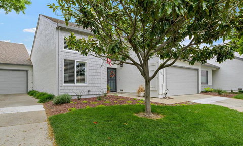 Lives just like a SFR! Desirable single level Villa, w/Atrium, patio area off kitchen and hall leading to beautiful backyd, all with water features. Shows like a masterpiece inside. Living Rm w/high ceilings, decorator track lighting, shutters, fireplace w/mantle, custom hearth. Adjoining Formal Dining w chandelier overlooks atrium, custom shutters. Spacious primary suite, w/grand bath, dressing area, 2 closets, large shower dual shower heads 1 rain, 1 traditional & bench. Opens to inviting backyard, water feature, grass area, spring in full bloom, raised garden bedsl. Beautiful kitchen w gas range, 4 burner + griddle. Granite counters, pantry, overlooks patio area with water feature and lattice cover for shade. Perfect for morning coffee. Indoor laundry room with extra storage area. 2 car attached garage w/work bench, built in overhead storage. Beautifully tiled entry plus. Bedrooms w/wood plank/laminate. Decorated like a model home. Countryside Villas HOA Pool, spa, tennis, RV storage. Close to downtown, great restaurants, shopping, wineries plus easy freeway access. Parking in driveway and on street. Owned Solar to save on power.